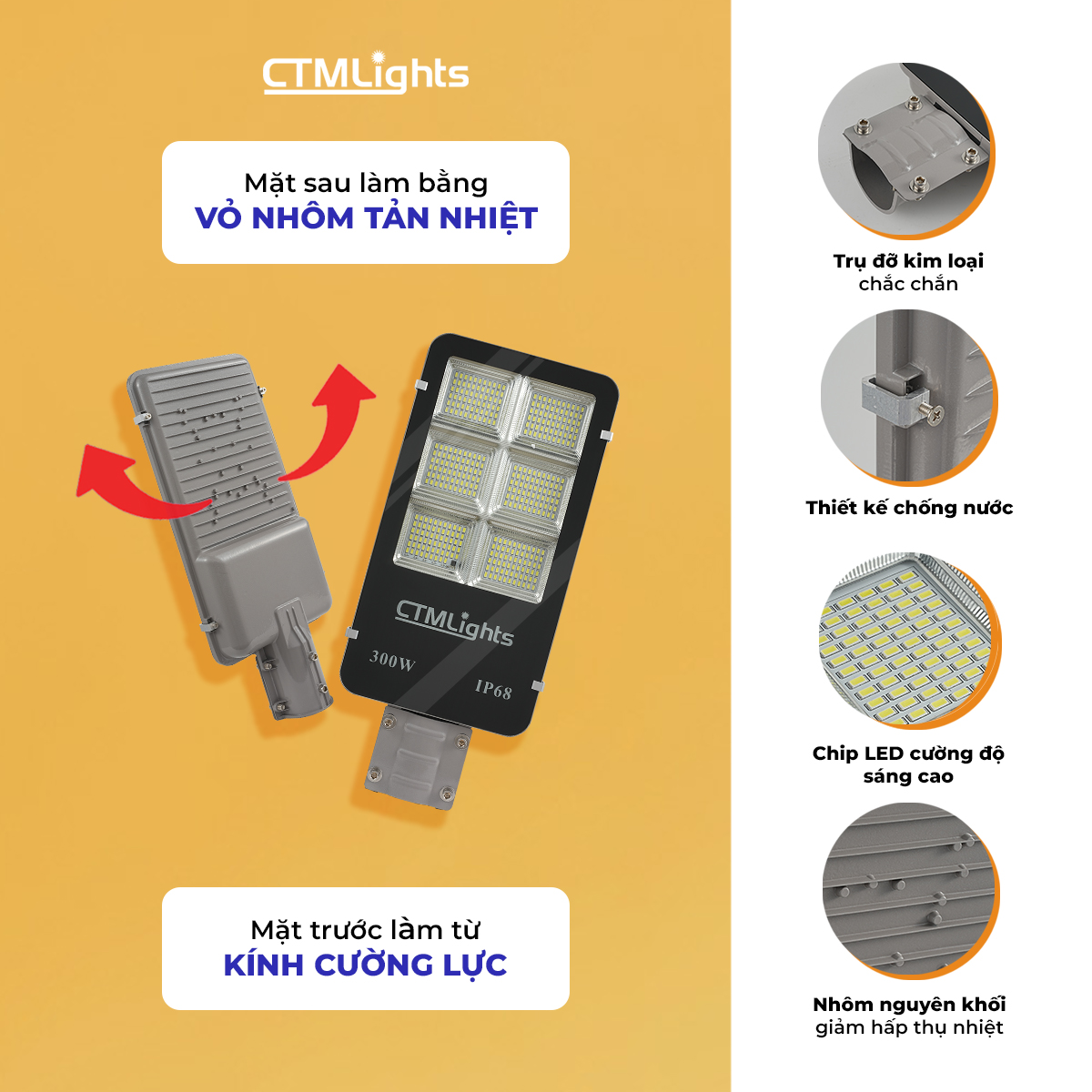 THÔNG SỐ KỸ THUẬT ĐÈN ĐƯỜNG NĂNG LƯỢNG MẶT TRỜI CTMLights CTM02 300W