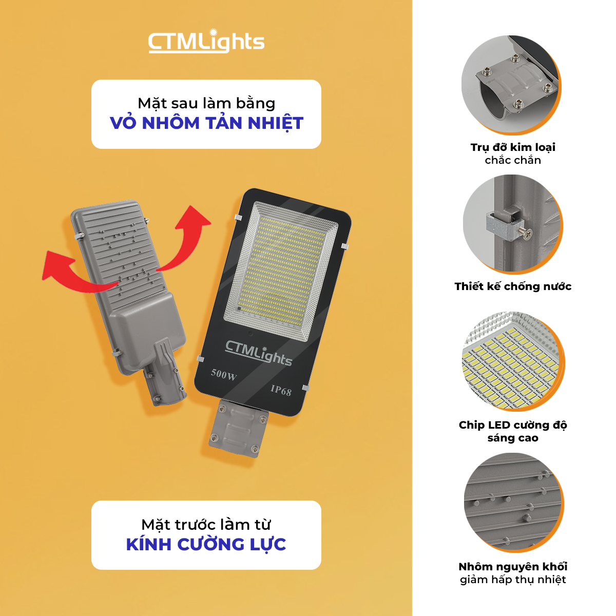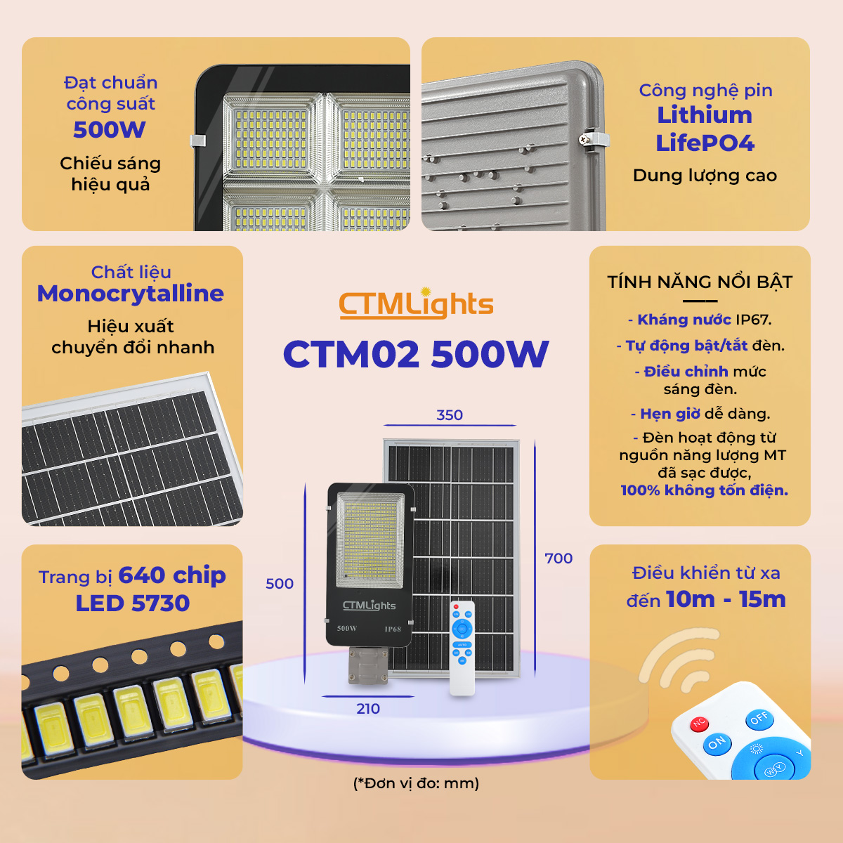 THÔNG SỐ KỸ THUẬT ĐÈN ĐƯỜNG NĂNG LƯỢNG MẶT TRỜI CTMLights CTM02 500W